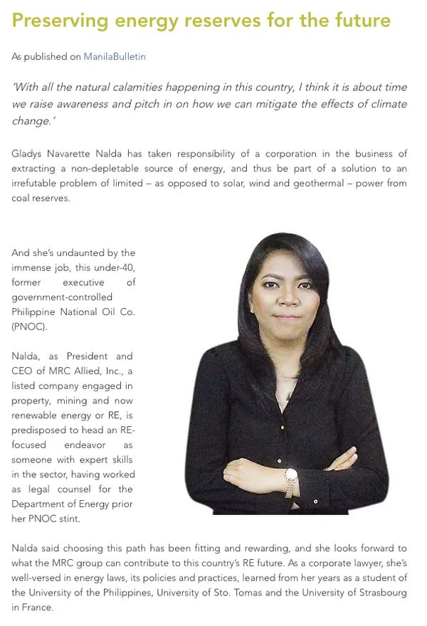 Our firm is led by Atty. Gladys N. Nalda, a lawyer by profession, corporate executive, and sustainability advocate.