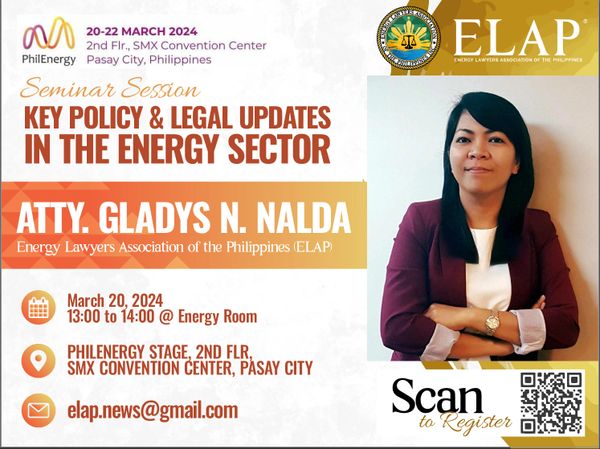 She is a member of the Integrated Bar of the Philippines, the Energy Lawyers Association of the Philippines, and the Institute of Corporate Directors.